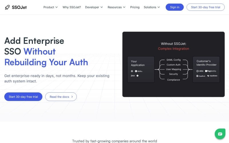 1. SSOJet2. Okta Workforce Identity3. Auth0 (by Okta)4. WorkOS5. Microsoft Entra ID6. Stytch7. Ping Identity8. Frontegg9. Descope10. ClerkFrequently Asked Questions (FAQ)Sort: