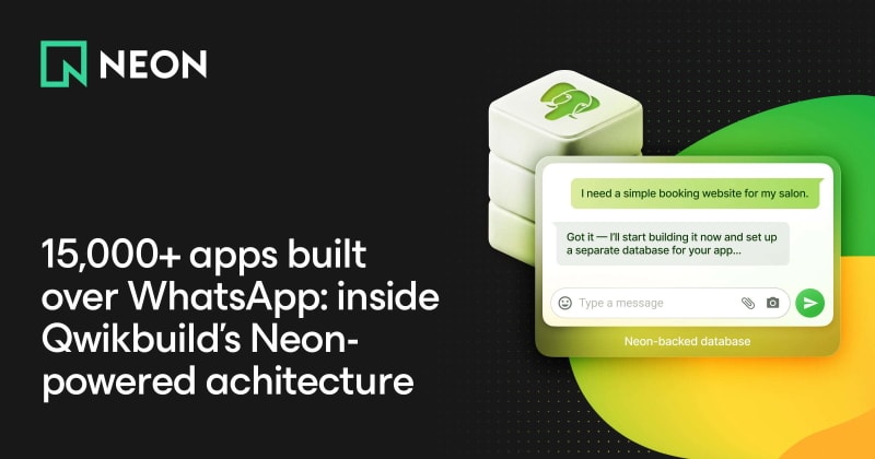 QwikBuild, an AI web app builder that launched on WhatsApp, has enabled over 15,000 creators to build apps by provisioning one isolated Neon Postgres project per generated app. This architecture leverages Neon's decoupled compute and storage to keep idle costs near zero via scale-to-zero, autoscale on traffic spikes, and