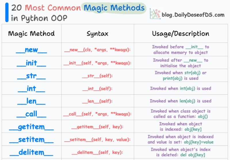Discover the 20 most common magic methods used in Python OOP, including __new__, __init__, and __str__. Learn how to use these methods and their importance in Python projects.