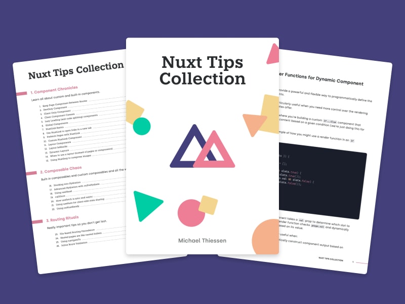 1. Disable auto-imports2. Environment Config Overrides3. Deduping Fetches4. Flatten Nuxt Content Routes5. Built-in Storage with Unstorage6. Query Params in Server Routes7. Where should config values go?8. Create Your Own Keyed Composable9. .nuxtignore10. Private Components in Layers11. NuxtLink Basics12. Inline Route Validation13. Scroll to the top on page load14. Official vs. Community Modules15. SSR Payload16. Layout Fallbacks17. Global Errors vs. Client-side Errors18. Custom Error Pages19. Mock Any Import for Testing20. Using useState for server rendered data21. Paired Server ComponentsNuxt Tips Collection3 Comments