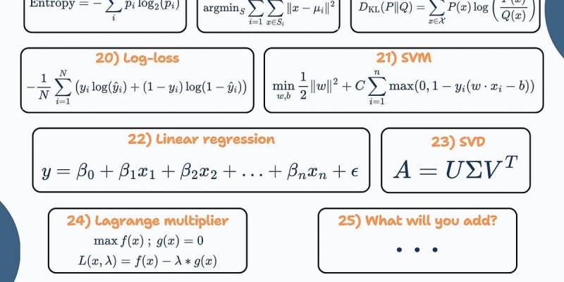 A visual presentation of crucial mathematical definitions used in Data Science and Statistics, such as Gradient Descent, Normal Distribution, MLE, Z-score, and SVD. The post explains these terms and their significance in various applications like dimensionality reduction, optimization, and data modeling.