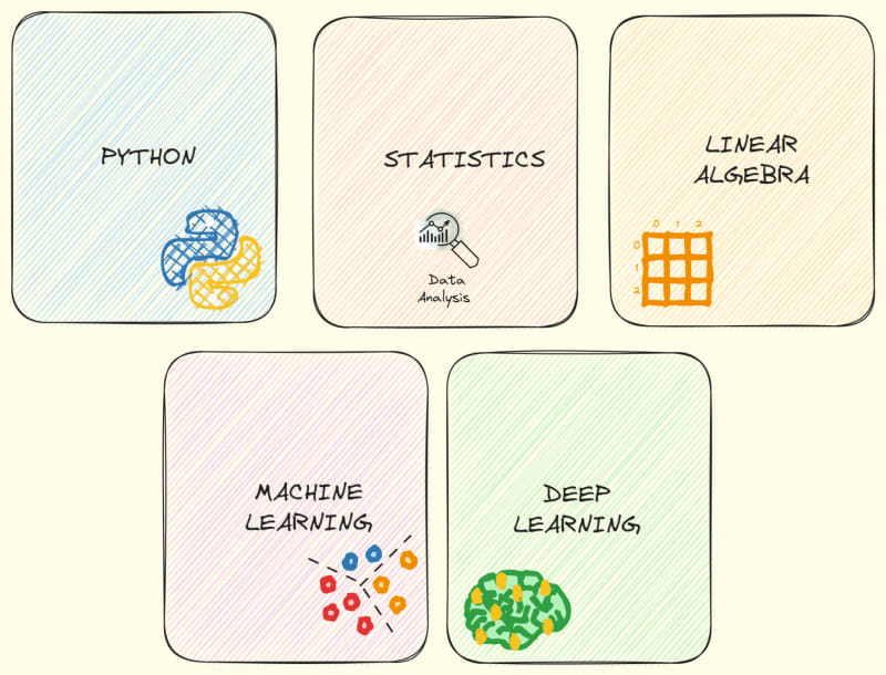 A list of five free books to master data science, covering topics such as Python, statistics, linear algebra, machine learning, and deep learning.
