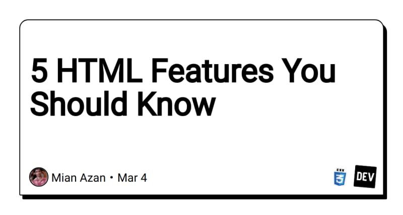1. Input Suggestions2. Details Discloure3. The Base Element4. Lazy Loading Images And Iframes5. The Picture ElementSort: