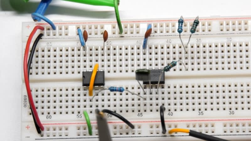 A beginner-friendly tutorial demonstrates building a function generator on a breadboard using a 555 timer for square-wave generation and a TL082 dual op-amp to create triangle waves. The guide explains the internal workings of the 555 timer as a relaxation oscillator, shows how to add frequency control with potentiometers, and