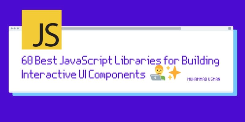 A comprehensive list of 60 JavaScript libraries for building interactive UI components, ranging from core frameworks like React and Vue.js to UI component libraries, animation libraries, data visualization tools, and more, helping developers choose the right tools based on their project needs.