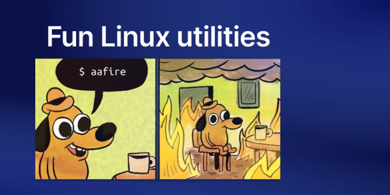 A list of fun Linux utilities to try, including 'cmatrix' for a Matrix-like terminal experience, 'apt-get moo' for a cow easter egg, 'aafire' to light up your console, 'sl' for a train animation, 'fortune' for random quotes, 'figlet' for ASCII art banners, 'nyancat' for an animated Nyan Cat, and 'pipes.sh' for random pipe patterns.