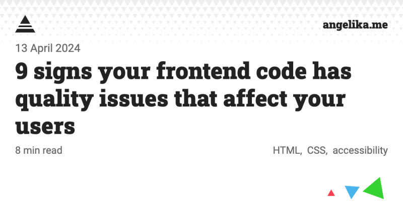 This post highlights 9 common signs of poor frontend code quality that can negatively impact a project's users.