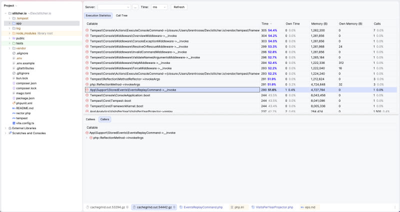 A developer optimized their blog's analytics system to process 11 million events, improving performance from 30 to 14,000 events per second through systematic changes: removing unnecessary database sorting, reversing nested loops, ditching the ORM for raw queries, replacing closures with while loops, fixing framework