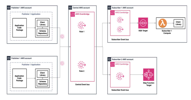 Amazon Key's engineering team overhauled its event platform from a tightly coupled monolithic architecture to a centralized event-driven system built on Amazon EventBridge. The redesign uses a single bus, multi-account pattern where a core EventBridge bus routes domain events to isolated subscriber accounts. A centralized