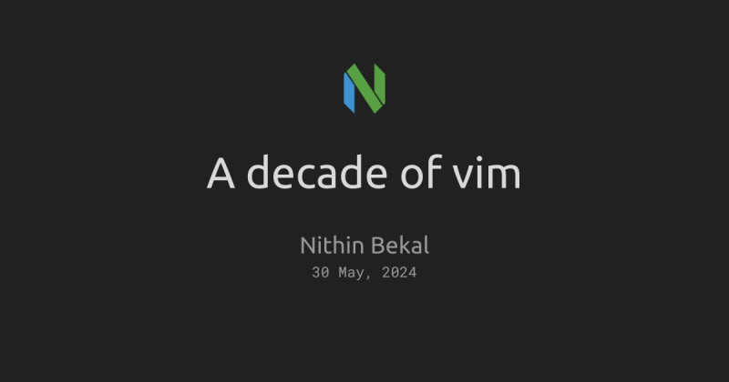 A post reflecting on the author's 10 years of using vim, including the switch to neovim, the use of Lua for config, and the transition from ctags to LSP.