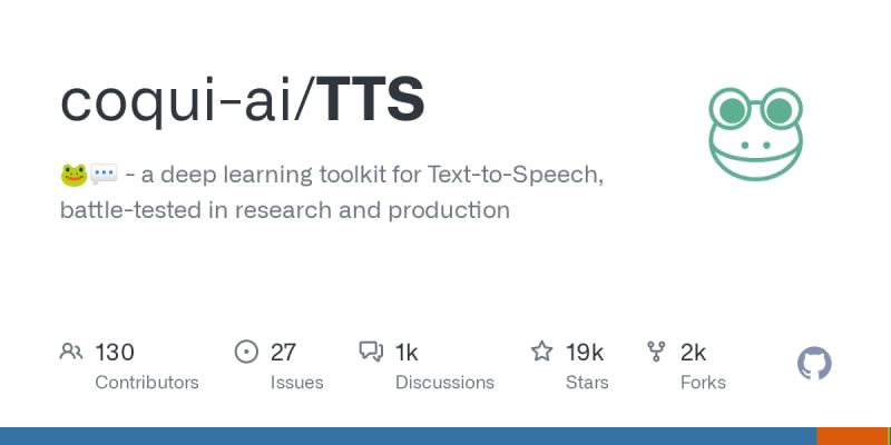 Coqui-ai/TTS is a deep learning toolkit for Text-to-Speech, battle-tested in research and production. It is available for inference with unconstrained voice cloning. The toolkit is available on GitHub and Coqui Studio API.