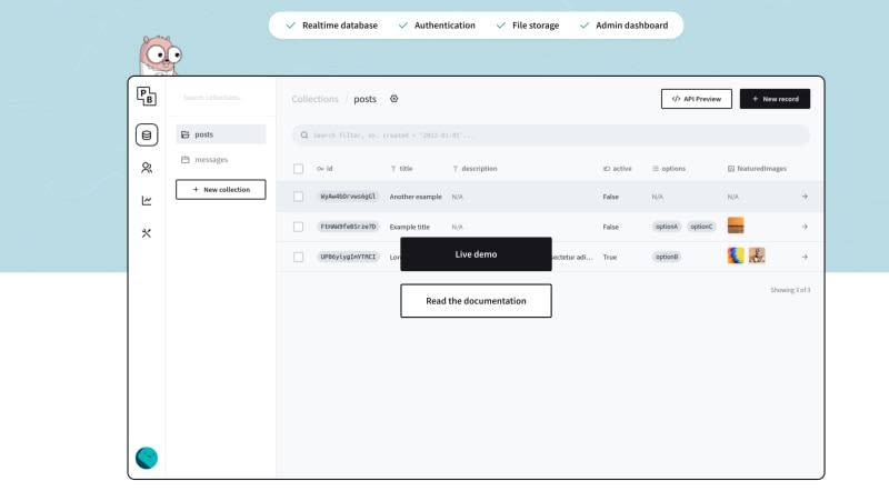 A Golang-based Open Source Backend / Firebase Alternative PocketBase is an open source backend consisting of embedded database (SQLite) with realtime subscriptions, built-in users management, convenient dashboard UI and simple REST-ish API.