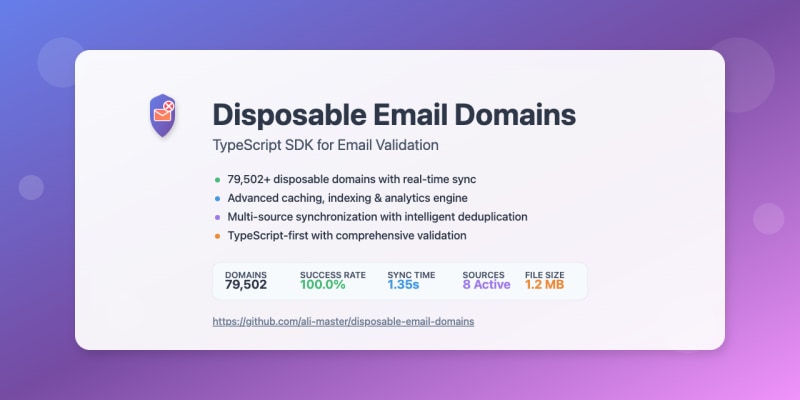 A powerful TypeScript SDK for detecting disposable email addresses with real-time synchronization and DNS validation