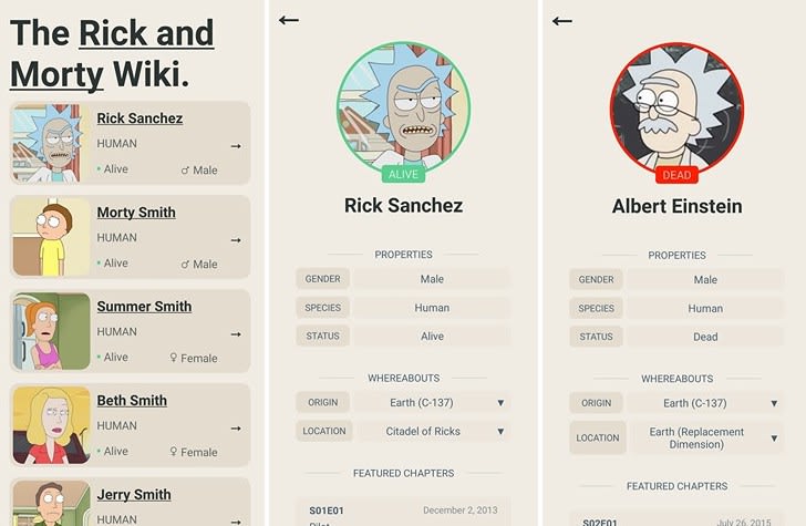A Rick and Morty Wiki made using React Native to serve an infinite scrolling list of all the characters in the famous series. Uses the Rick and Mortar API to display the details of each character including- name, gender, origin, location, amount of residents, chapters the character is featured in.
