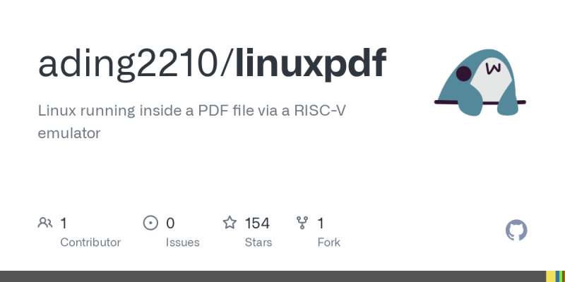 Linux has been successfully run inside a PDF file using a RISC-V emulator based on TinyEMU. Modern PDF formats support JavaScript, but their implementation in browsers is limited due to security concerns. By using an old version of Emscripten targeting asm.js, a modified TinyEMU RISC-V emulator can be embedded within a PDF.