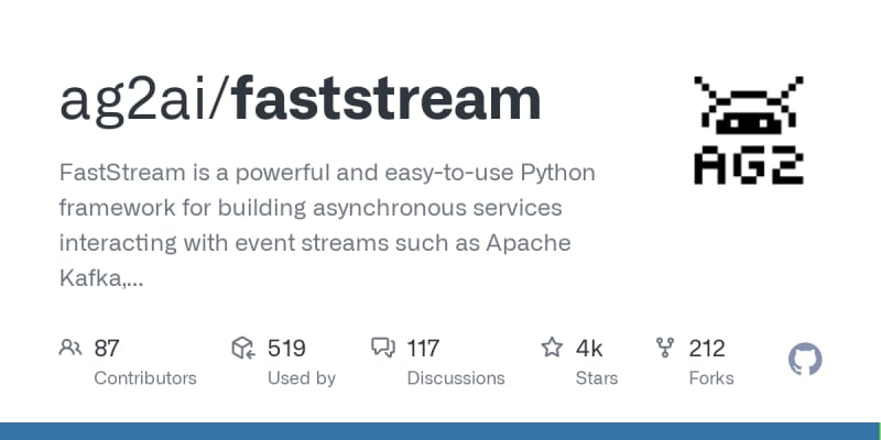 FastStream is a Python framework designed for building asynchronous services that interact with event streams such as Apache Kafka, RabbitMQ, NATS, and Redis. It simplifies the creation of producers and consumers for message queues, leveraging Pydantic for data validation and providing automatic documentation generation. Key features include support for multiple message brokers, intuitive development with full-typed editor support, efficient dependency management, and in-memory testing. FastStream integrates easily with HTTP frameworks like FastAPI, making it suitable for developers at various experience levels.