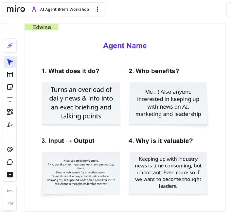 A marketing team experimented with building AI agents to create a hybrid human-AI workforce over one quarter. They used n8n as their primary automation platform, structured the project with dedicated channels and weekly check-ins, and built various agents including an executive briefing agent, content workflow system, and LLM benchmarking tool. Key learnings included: not everything needs full autonomy (simple workflows often work better), tool integration is harder than expected, scoping down is critical for success, and understanding processes deeply before automating is essential. Some agents became valuable company-wide tools while others served mainly as learning exercises.