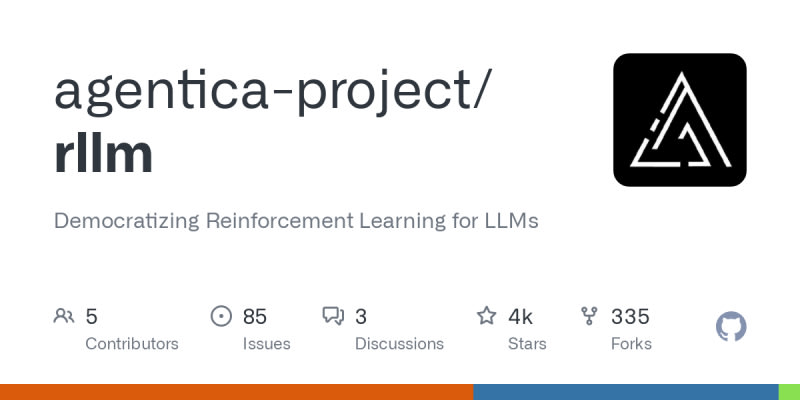 rLLM is an open-source framework for training language agents using reinforcement learning. The project has released several high-performing models including DeepSWE (32B software engineering agent achieving 59% on SWEBench-Verified), DeepCoder (14B coding model matching o3-mini performance with 60.6% Pass@1 on LiveCodeBench),