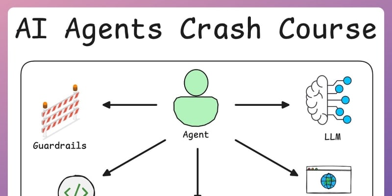 In this crash course, learn about AI agents and their implementation. It covers the fundamentals, memory for agents, agentic flows, guardrails, implementing agentic design patterns, and optimizing agents for production. The aim is to build autonomous systems that can reason, plan, take actions, and correct themselves, going