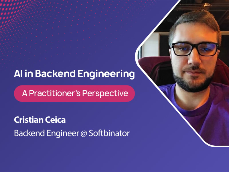 A senior backend engineer at Softbinator Technologies shares how AI tools have become embedded in daily backend workflows. Key areas covered include AI-powered PR review with tools like CodeRabbit, Claude Code agents integrated into test repositories for coverage auditing and test generation, and LLMs as debugging accelerators