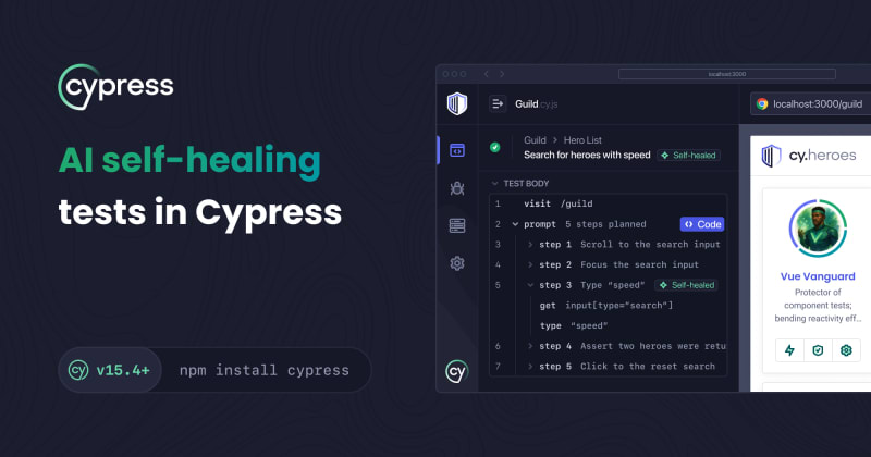 Cypress introduces AI-powered self-healing for UI tests through cy.prompt, which automatically adapts when selectors change due to UI updates. Unlike black-box solutions, it provides full transparency by showing exactly what changed in the Command Log and Console, whether healing occurred via cached mappings or AI calls. Teams
