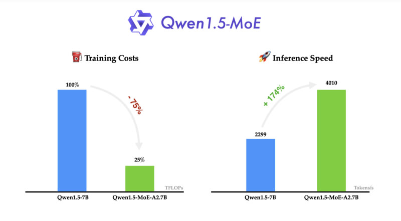 Qwen1.5-MoE-A2.7B is an improved version of Qwen, a Large Language Model (LLM) series developed by the Qwen team at Alibaba Cloud. It performs on par with heavyweight 7B models like Mistral 7B and Qwen1.5-7B, despite having only 2.7 billion activated parameters. The architecture of Qwen1.5-MoE-A2.7B utilizes fine-grained experts and a generalized MoE routing paradigm.