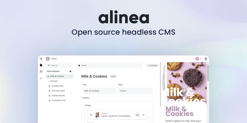 Open source CMS Alinea is an open source content management system written in TypeScript. Installed as a single NPM package you get going without setting up databases, environments or any other services.