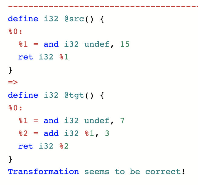 The functions 'add' and 'shift' in LLVM have different behaviors and can't be safely substituted. Undef in LLVM can be replaced with various values, but the replacement should be a subset of the original value set. Undefined behavior in an IR is not necessarily related to source-level undefined behavior.