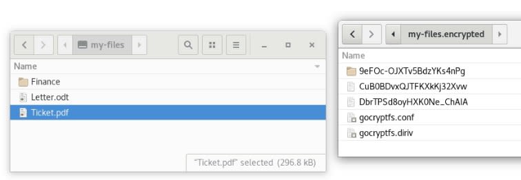 Gocryptfs is an encrypted overlay filesystem written in Go. It was inspired by EncFS and strives to fix its security issues while providing good performance (benchmarks) It has gone through hours and hours of stress (fsstress, extractloop.bash) and correctness testing. It is now considered ready for general consumption.