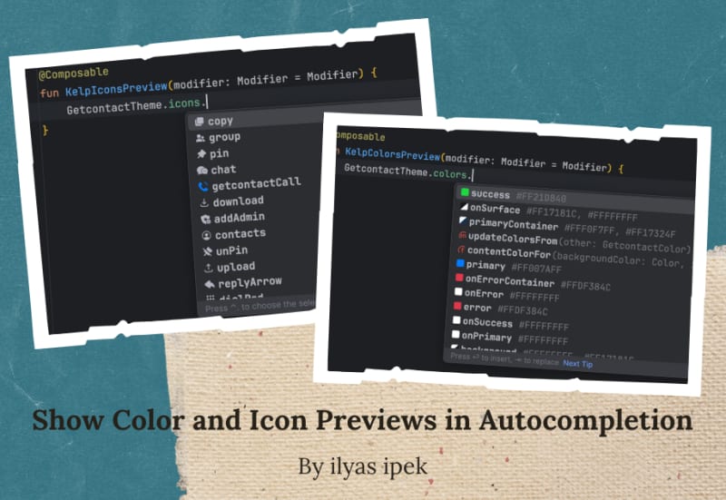 At Getcontact, leveraging the Kelp plugin for Android Studio enhances developer experience by showing previews of colors, icons, and components in autocompletion. This includes dark and light color previews, icon previews, customizable icons for functions, and shared live templates. The setup involves installing the Kelp