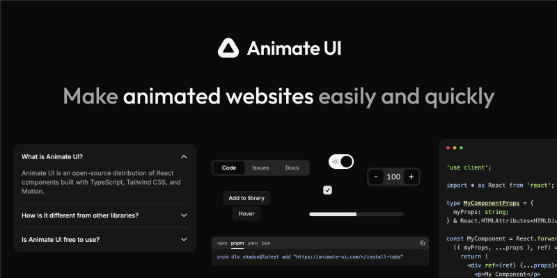 Animate UI is an open-source component distribution system that provides fully animated React components built with TypeScript, Tailwind CSS, and Framer Motion. It complements Shadcn UI by offering motion-animated components that can be installed via CLI or copied directly into projects. The platform focuses on providing
