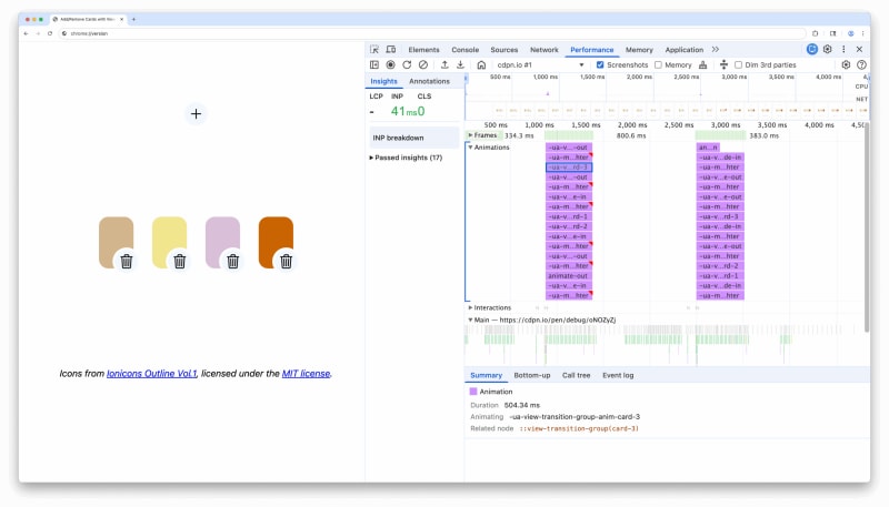 Chrome 144 introduces a performance optimization where width and height animations no longer force execution on the Main Thread if these values don't actually change during the animation. This particularly benefits View Transitions, where ::view-transition-group pseudos often have static width/height keyframes that can now run