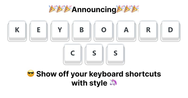 Keyboard CSS is a library of ready-to-use, cross-browser compatible keyboard like button UI for use in your web projects. Show off your keyboard shortcuts with style π¦.License and Contributing Contributing Code of Conduct is available on GitHub here.