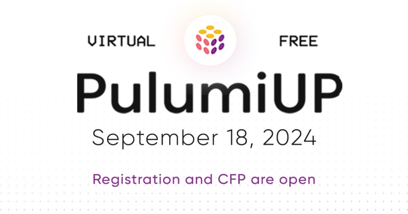Announcement of PulumiUP Conference 2024, a global virtual conference focused on cloud, IaC, AI, DevOps, and cloud culture. Keynotes from Joe Duffy and Luke Hoban. Call for speakers is open. Themes include infrastructure as code, platform engineering, AI/ML, and cloud culture.
