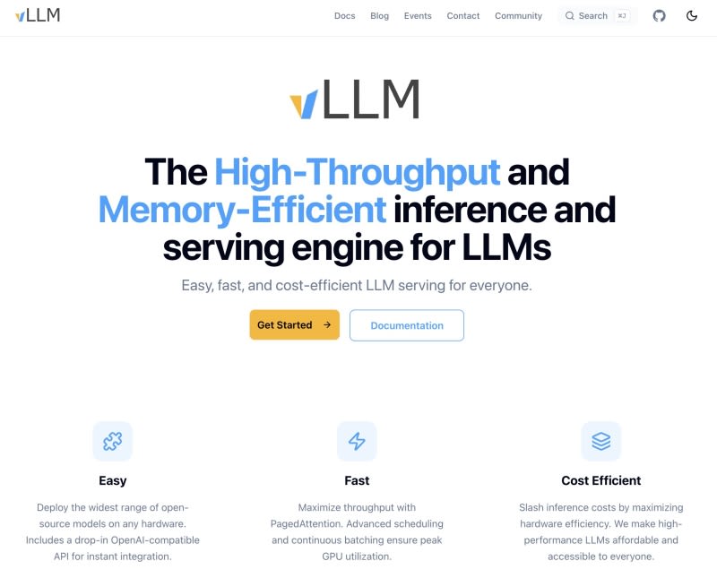 vLLM launches a new website at vllm.ai featuring an installation selector and events page. The project is separating community logistics from GitHub to let developers focus on code. New communication channels include email addresses for talent recruitment, partnerships, and social media promotion. A vLLM Daily repository now provides RSS-based daily change summaries.