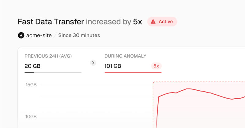 Vercel has made anomaly alerts generally available for teams on Observability Plus. The feature monitors applications in real-time, detecting usage anomalies (e.g., unusual edge requests or function duration) and error anomalies (e.g., spikes in 5XX responses). When an anomaly is detected, Vercel Agent can automatically