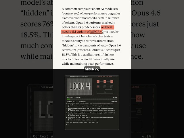 Anthropic released Opus 4.6, featuring a 1 million token context window with significantly improved information retention (76% vs 18.5% on retrieval benchmarks). The model excels at sustained agentic tasks like navigating large codebases and multi-step analyses. New features include agent teams that work in parallel, context