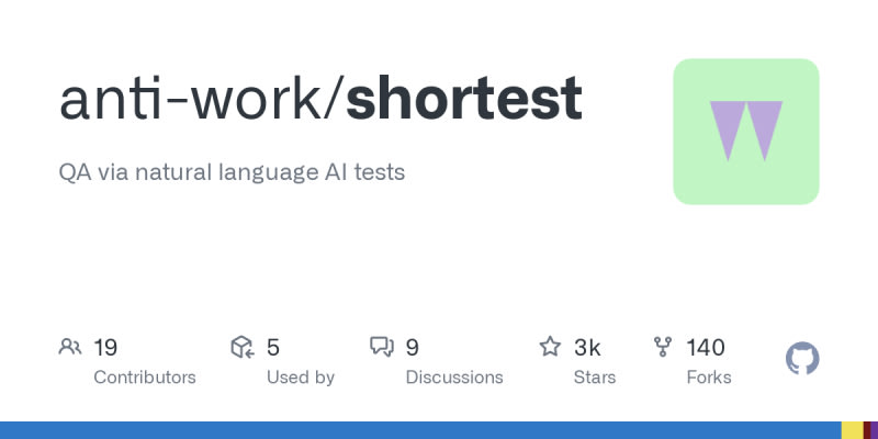 FeaturesInstallationQuick StartUsing callback functionsLifecycle hooksRunning TestsGitHub 2FA Login SetupEnvironment SetupCI SetupBuilding Shortest Package LocallySetup Shortest CLI for local developmentTest Cli LocallySort: