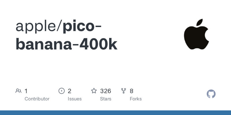 Apple released Pico-Banana-400K, a dataset containing approximately 400,000 text-image-edit triplets for training text-guided image editing models. The dataset includes 257K single-turn examples, 56K preference learning samples, and 72K multi-turn conversations, covering 35 edit operations across 8 semantic categories. Built