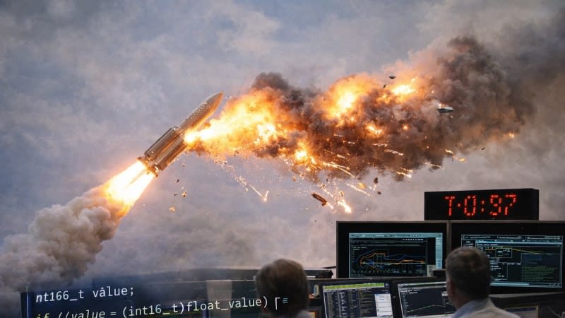 On June 4, 1996, Ariane 5 Flight 501 exploded 37 seconds after launch due to a software failure rooted in reused code from the Ariane 4 rocket. An alignment routine inherited from Ariane 4 continued running during Ariane 5's ascent despite serving no purpose there. Ariane 5's higher horizontal velocity caused a 64-bit