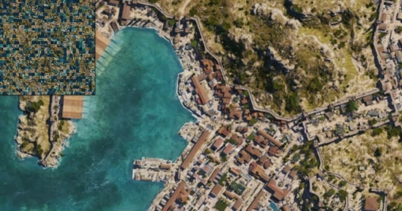 Alex Goldring demonstrated Virtual Texturing in WebGL by rendering Assassin's Creed: Odyssey's 32K Greece map in a browser. The technique splits the massive 804 MB, 32,768×32,768 pixel image into small tiles, reducing VRAM usage from 4 GB to just 16 MB while enabling near-instant loading. Live demos and technical breakdowns are