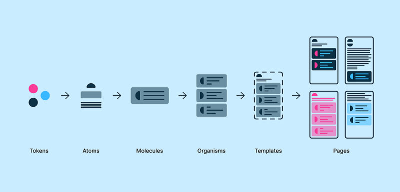 Atomic Design, introduced by Brad Frost in 2013, is a methodology that breaks down user interfaces into fundamental components to create scalable, consistent, and maintainable design systems. The process is structured into five stages: Atoms, Molecules, Organisms, Templates, and Pages. This approach ensures a systematic and