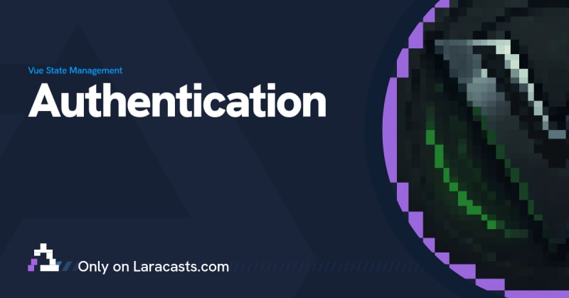 A tutorial covering Vue.js authentication implementation using Pinia for state management. The lesson demonstrates how to integrate with a Laravel backend that provides registration, login, and user detail retrieval endpoints. The backend uses Laravel Sanctum for token generation, and the tutorial shows how to handle both