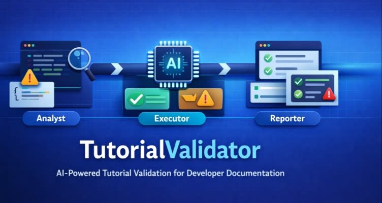 TutorialValidator is an open-source, AI-powered tool that automatically verifies whether software tutorials work end-to-end. It operates as a three-stage pipeline: an Analyst that scrapes tutorial pages and builds a structured test plan, an Executor that runs commands, edits files, and checks HTTP responses in a clean