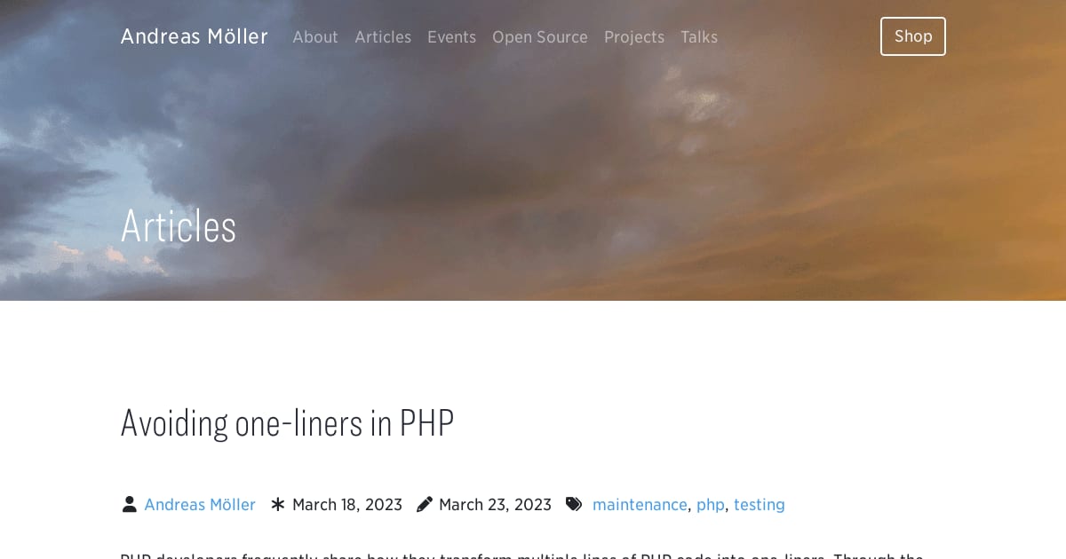 Avoiding one-liners in PHP Link – localheinz.com is the all-in-one monitoring tool for your entire website. We monitor uptime, SSL certificates, broken links, scheduled tasks and more. You'll get notifications for us when something's wrong.