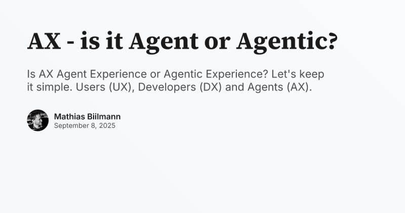 Mathias Biilmann clarifies that AX should stand for 'Agent Experience' rather than 'Agentic Experience', arguing that agents should be treated as a new type of user with their own unique needs. He draws parallels to established concepts like User Experience (UX) and Developer Experience (DX), emphasizing that agents have both