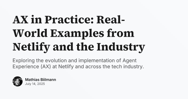 Agent Experience (AX) is emerging as a critical discipline for building products that AI agents can effectively use on behalf of humans. Netlify pioneered several AX patterns including anonymous deployment flows, agent-human handovers, and specialized documentation formats like llms.txt. The article explores real-world