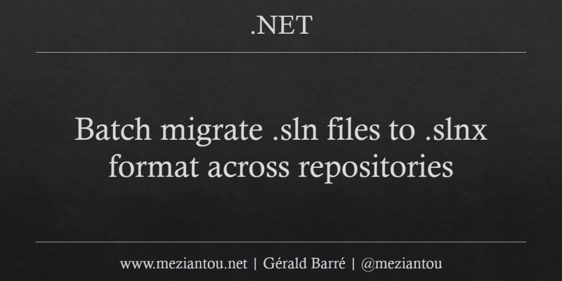 .NET introduced a new .slnx solution file format that offers better readability, simplified merging, and easier parsing compared to traditional .sln files. While individual files can be converted using dotnet sln migrate or IDE tools, organizations with multiple repositories can use Meziantou.ProjectUpdater to automate batch