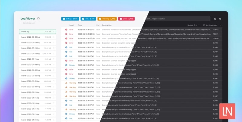 Log Viewer for Laravel Laravel is a fast and beautiful Log Viewer written by Arunas Skirius. You can see single, daily, and horizon logs. You can also customize which logs are picked up by the application via the package's configuration file.