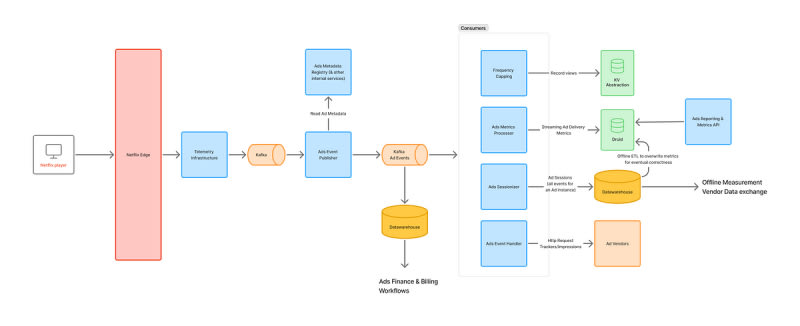 Netflix developed a robust ads event processing pipeline to enhance digital advertising strategies. The system includes components for ad insertion, tracking, and real-time feedback to optimize ad delivery and ensure accurate reporting. Netflix's approach addresses scalability and integration with third-party vendors,
